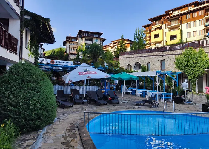 Set within 6 km of Sunny Beach Amusement Park, the 1-room Sun Coast Apartment comprises an adjoining terrace and a balcony overlooking the patio. Wi-Fi and free private parking are also available at this beachfront apartment.